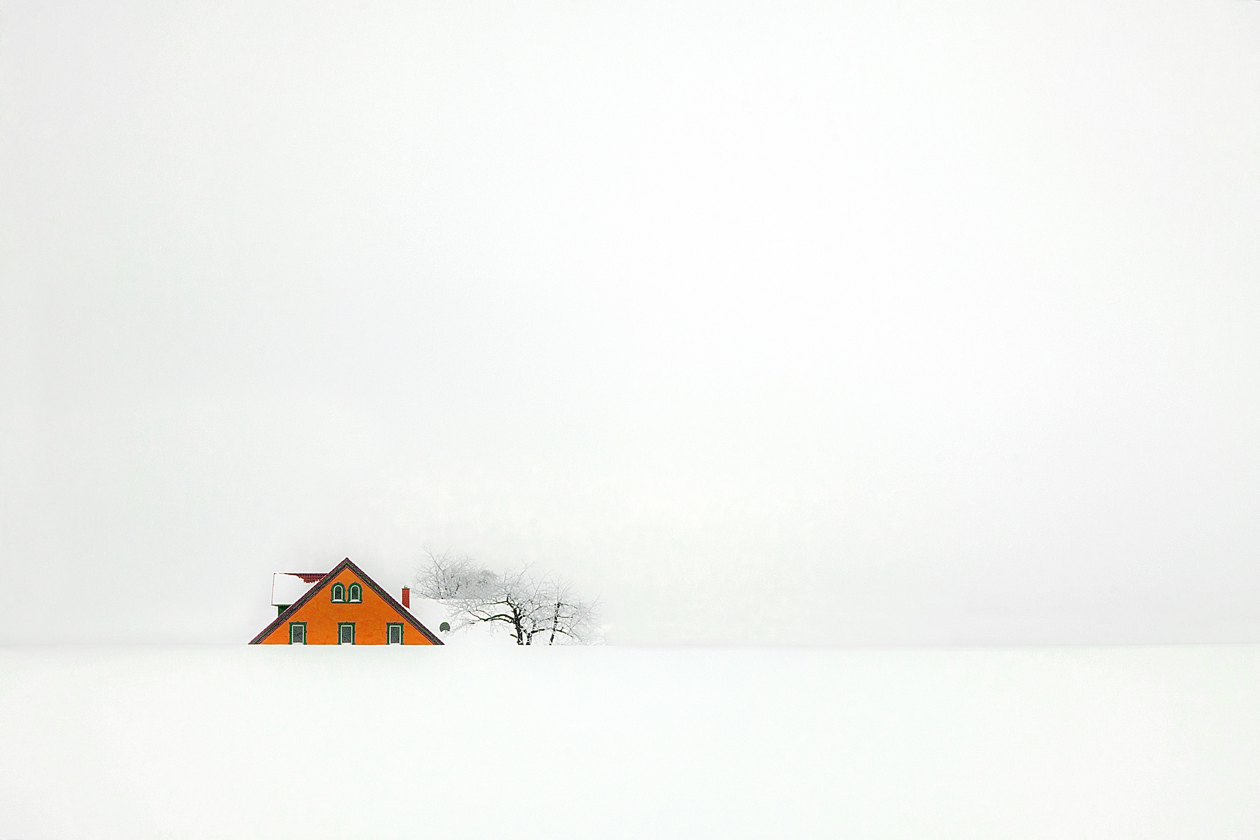 When the whole landscape is hidden under a blanket of snow, the composition looks more minimalist and interesting. Sometimes there is so much snow on the ground that the horizon is invisible, giving more freedom and the opportunity to create a composition to the photographer's taste.